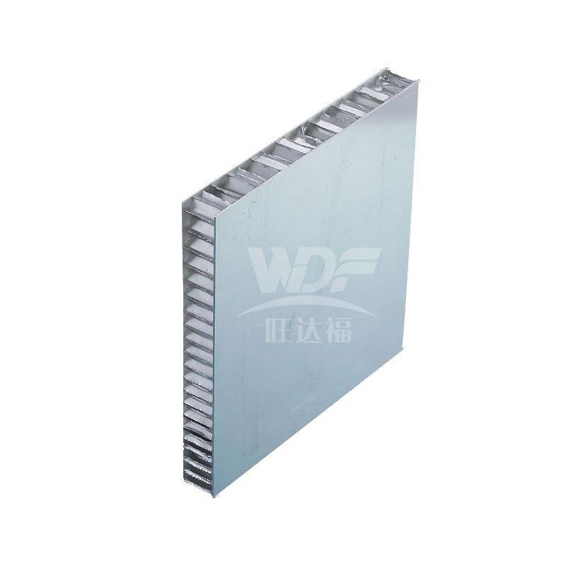 The top and bottom surfaces of the sandwich honeycomb panel are made of two sheets of aluminum alloy, while the center part of